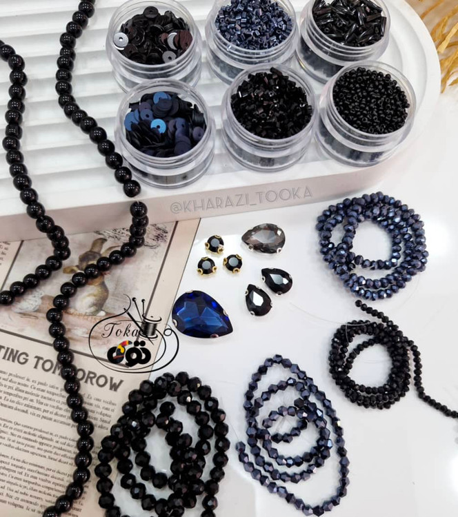 ملیله منجوق از هر رنگ ۵ گرم و پولک هر رنگ ۳ گرم