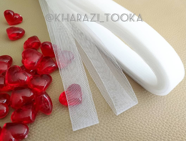 تور دبی یا نوار گرند سفید جهت لباس مجلسی، لباس عروس، لباس کودکان، تزئینات گیر مو، کش مو، تل سر
