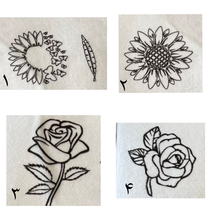 الگوی آماده یا پترن جواهردوزی وگلدوزی از جنس لایی آبشونده که دارای چسب جهت فیکس شدن بر روی پارچه می باشد و بعد از اتمام گلدوزی براحتی در آب حل شده و از بین می رود