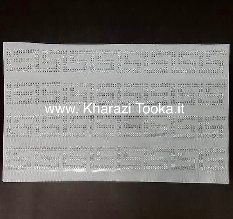 نگین ورقی حرارتی طرح ورساچی نقره ای ، حاشیه، ورساچی نگین مشکی که با حرارت اتو به لباس و پارچه می چسبد