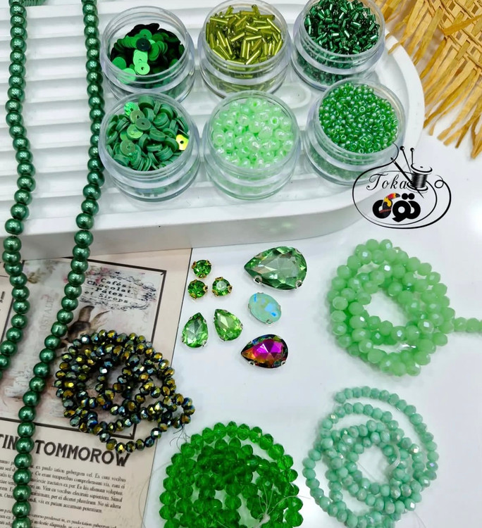 ملیله منجوق از هر رنگ ۵ گرم و پولک هر رنگ ۳ گرم