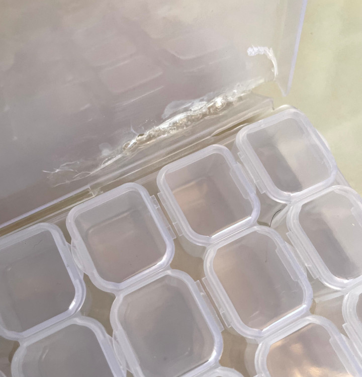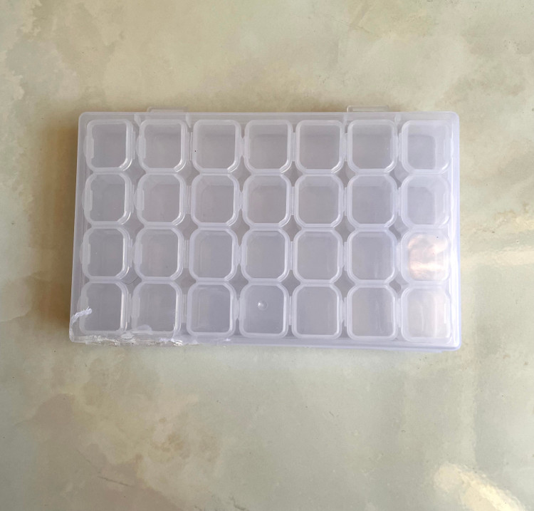 جعبه ۲۸ خونه کوچک که فقط یک شکستی روی درب داره و بقیه خونه ها سالم هستند درب براحتی باز و بسته می شود و راحت قفل می شود
