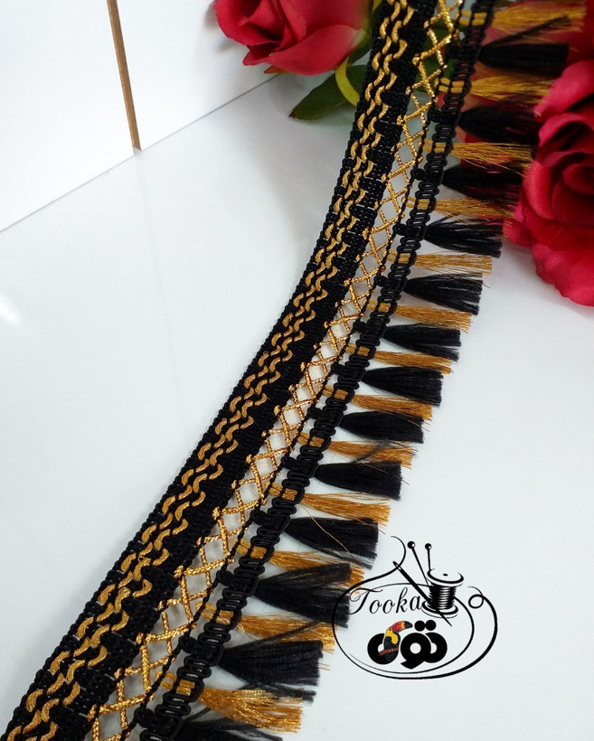 متاسفانه این کالا در حال حاضر موجود نیست. میتوانید از طریق لیست بالای صفحه، از محصولات مشابه این کالا دیدن نمایید.نوار ریشه دار پهن ابریشمی و براق خرجکار لباس، مانتو، پرده، دکوراسیون