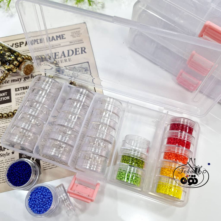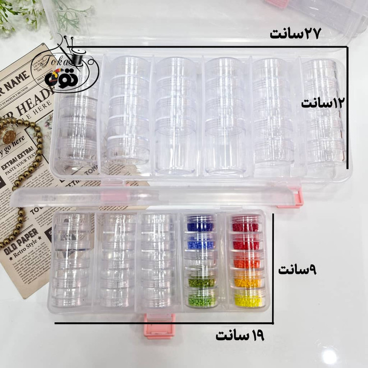 جعبه استوانه ای ۲۵ خونه با ۲۵ درب جداگانه هر خونه حدود ۷ گرم منجوق فضا دارد