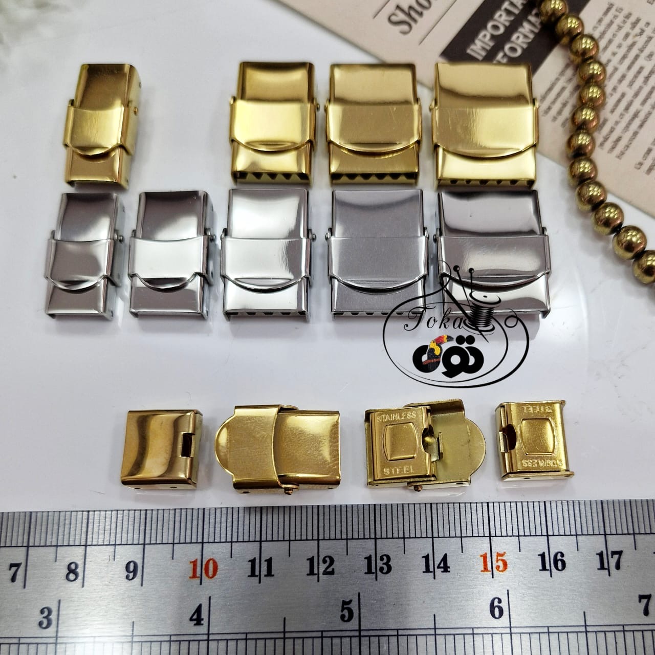 قفل دستبند گازگیری قفل دستبند چرم طلایی و نقره ای استیل رنگ ثابت ضد حساسیت