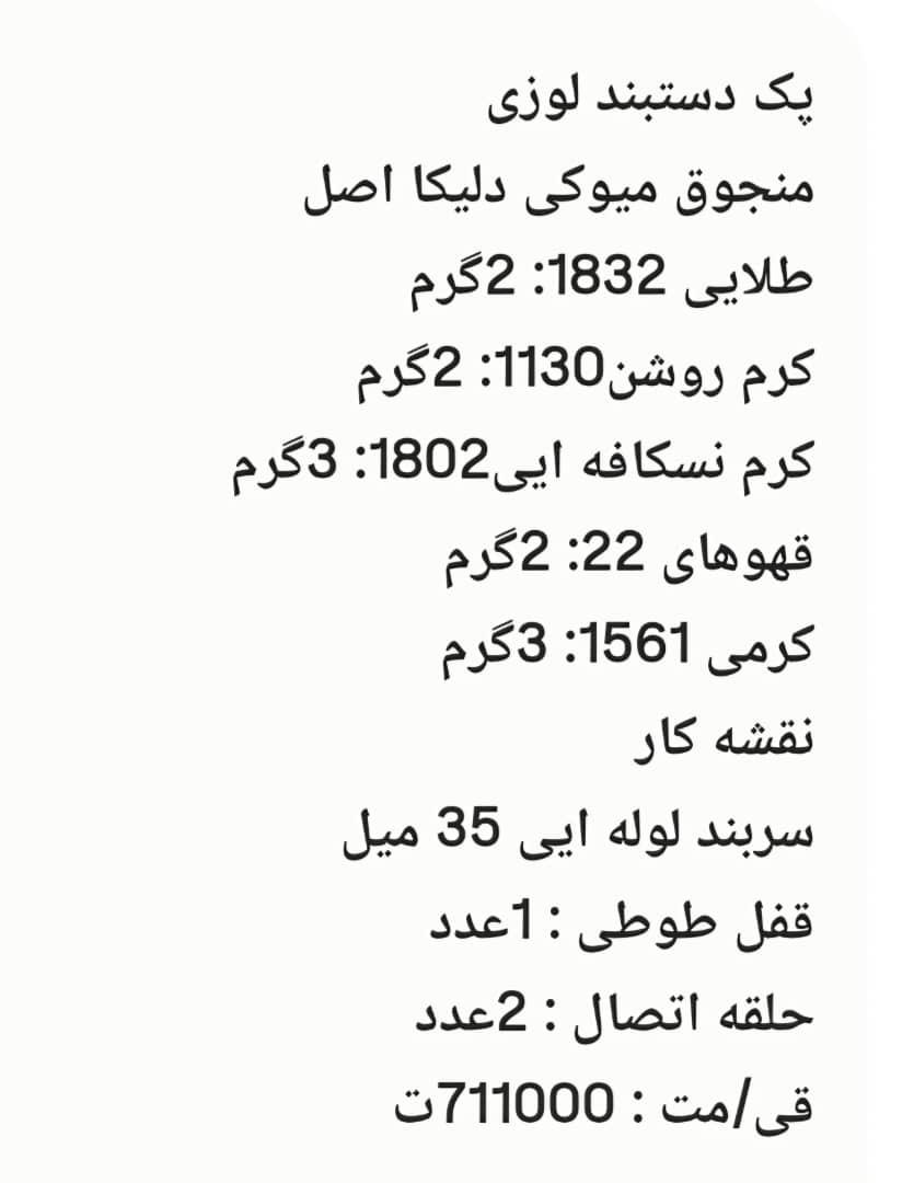 جنس: منجوق میوکی دلیکا و خرجکار های استیل رنگ ثابت
