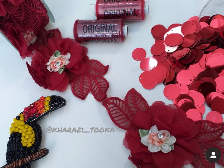 یراق گل یا نوار و خرجکار برای تزئین لباس، مانتو، کیف، کفش، پرده، سرویس خواب و ....