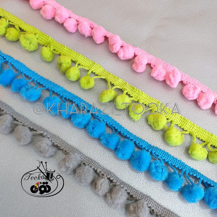 یراق پم پم دار ، خرجکار پم پم دار جهت تزئین لباس، مانتو، پرده، سرویس خواب، کیف، کفش، لباس کودک، اتاق کودک، اتاق بازی، سبسمونی، دکوراسیون و ... استفاده می شود