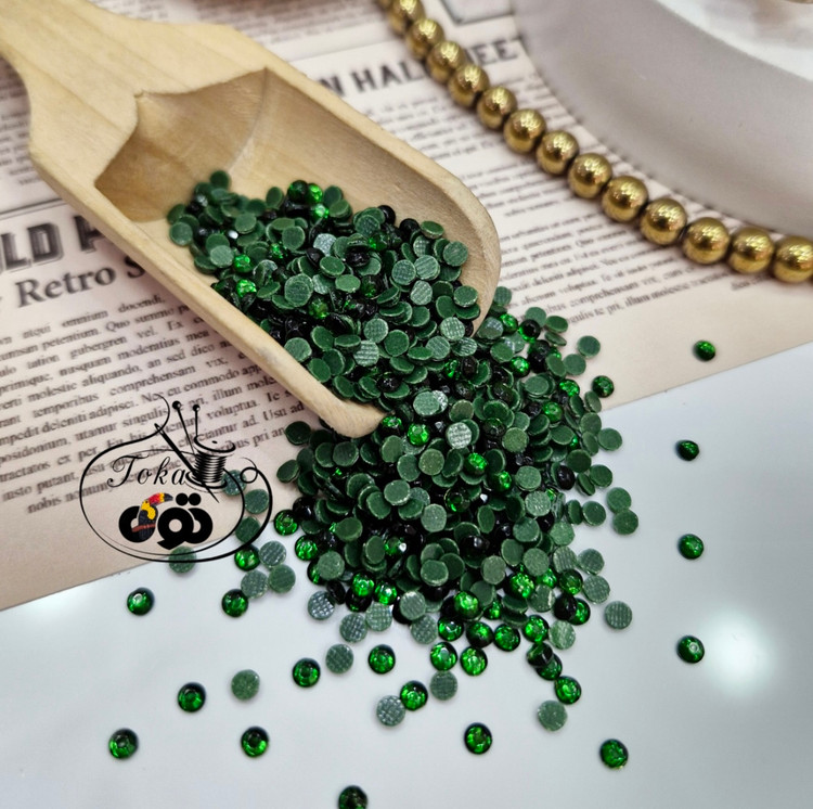 نگین حرارتی سبز با حرارت اتو به لباس. پارچه، مانتو، سرویس خواب. پرده، کارهای هنری می چسبد
