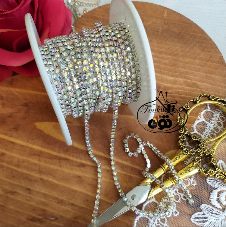 نگین متری سایز ۶ هفت رنگ جهت جواهردوزی، تزئینات لباس، کیف، کفش، تل مو، گیر سر، زیورآلات استفاده می شود