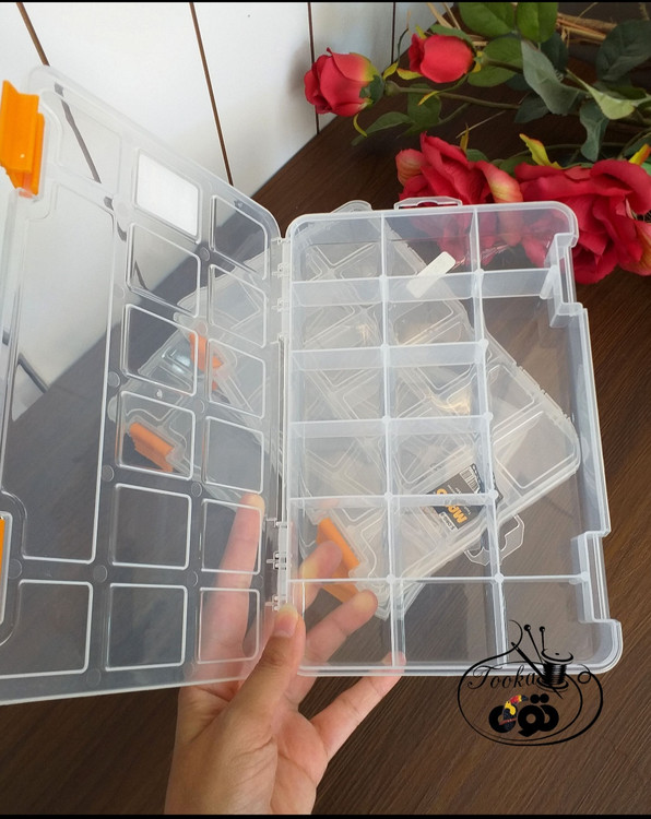 جعبه متریال پلاستیک با کیفیت جهت متریال جواهردوزی منجوق، ملیله، پولک، مروارید، کریستال، بدلیجات، زیورآلات، کلیه وسایل ظریف استفاده می شود