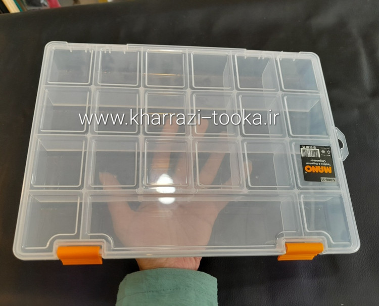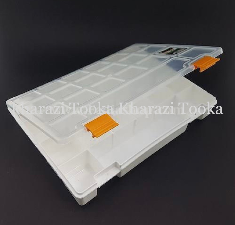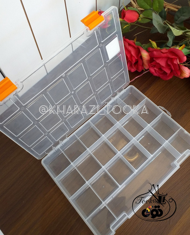 جعبه متریال بزرگ ۱۱ اینچ جهت متریال جواهردوزی، منجوق، ملیله، پولک، مروارید، کریستال، بدلیجات، زیورآلات و کلیه وسایل ظریف استفاده می شود