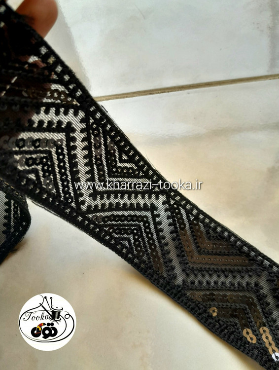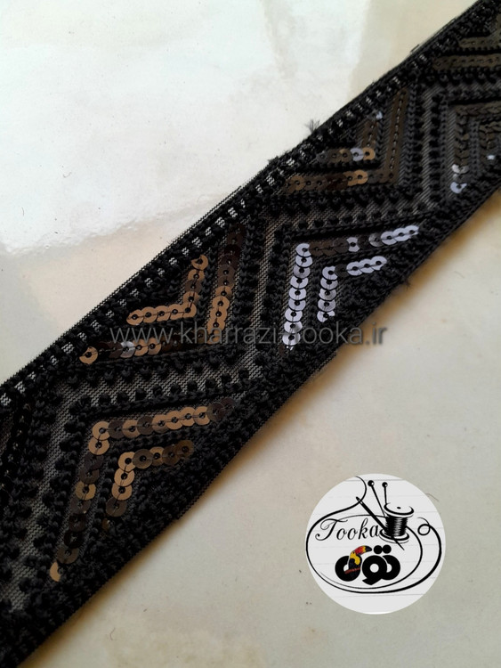 یراق گلدوزی و پولک دوزی مشکی ، خرجکار یا نوار برای تزئین انواع لباس، لباس مجلسی ، چادر، مانتو، کیف، کفش، پرده، کوسن، سرویس خواب و ... استفاده می شود