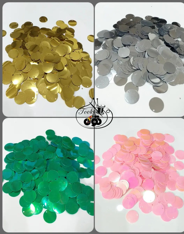 پولک سکهای یا پولک ریالی ۱.۵ سانتی جهت لباس مجلسی، لباس محلی، مانتو، کیف، کفش، پرده، شال، روسری، گل سازی، جواهردوزی استفاده می شود.