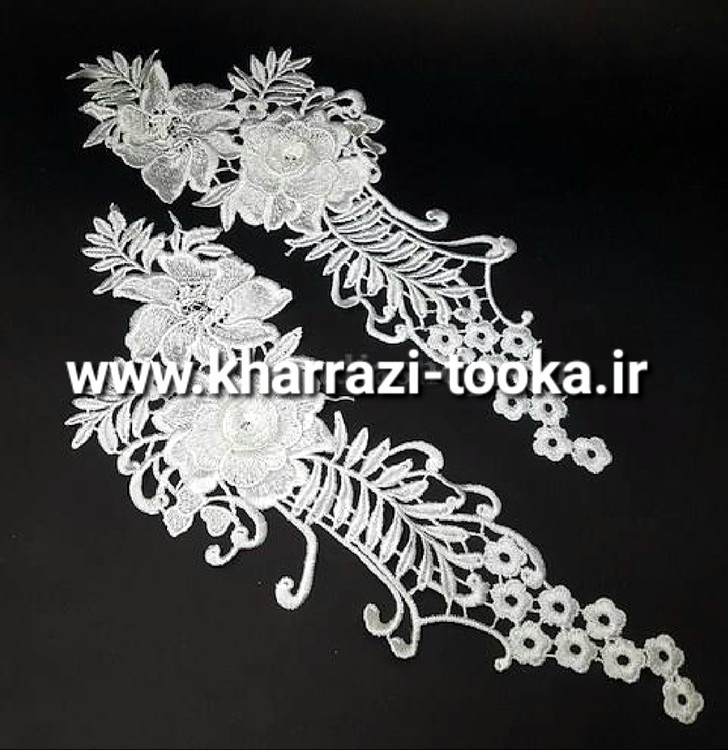 تکه دوزی گل برجسته گیپور سفید، خرجکار یا اپلیکه برای تزئین انواع لباس، کیف، کفش، پرده، کوسن، سرویس خواب و ... استفاده می شود که بعضی دوختنی و بعضی حرارتی هستند.