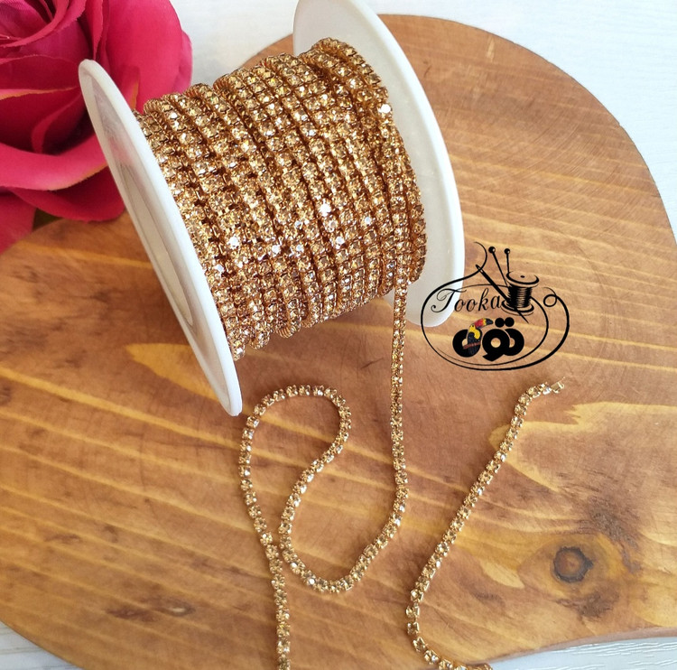نگین متری پایه همرنگ سایز ۶ طلایی روشن جهت جواهردوزی. زیورآلات، تزئینات لباس. کیف، کفش، گیر مو، تل سر استفاده می شود.