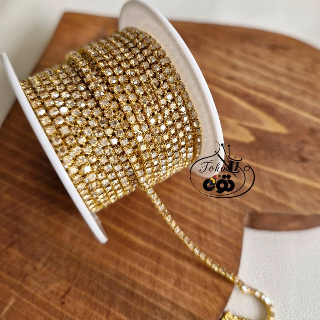 متاسفانه این کالا در حال حاضر موجود نیست. میتوانید از طریق لیست بالای صفحه، از محصولات مشابه این کالا دیدن نمایید.نگین متری طلایی پایه همرنگ طلایی جهت لباس، جواهردوزی، زیورآلات، تزئینات