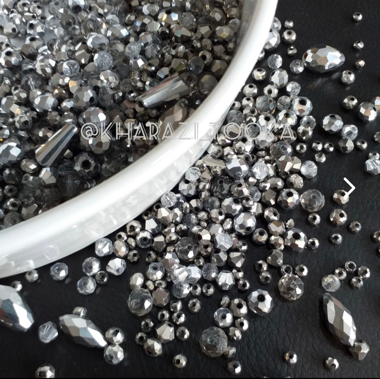 میکس کریستال اصل شامل کریستال با اشکال مختلف جهت تزیین لباس، مانتو، کیف، کفش، جواهردوزی، بدلیجات