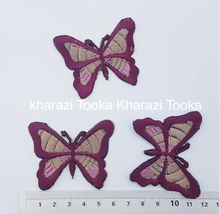 تکه دوزی پروانه کرمی زرشکی