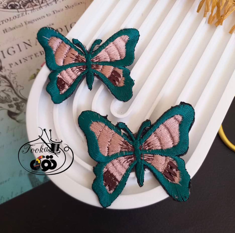 تکه دوزی حرارتی پروانه پارچه ای گلدوزی شده جهت اباس، شال، روسری، کلاه، کیف، کفش، پیراهن، دامن ، حوله، سرویس خواب، پرده، رومیزی که با حرارت اتو می چسبد و قابل دوختن هم هست