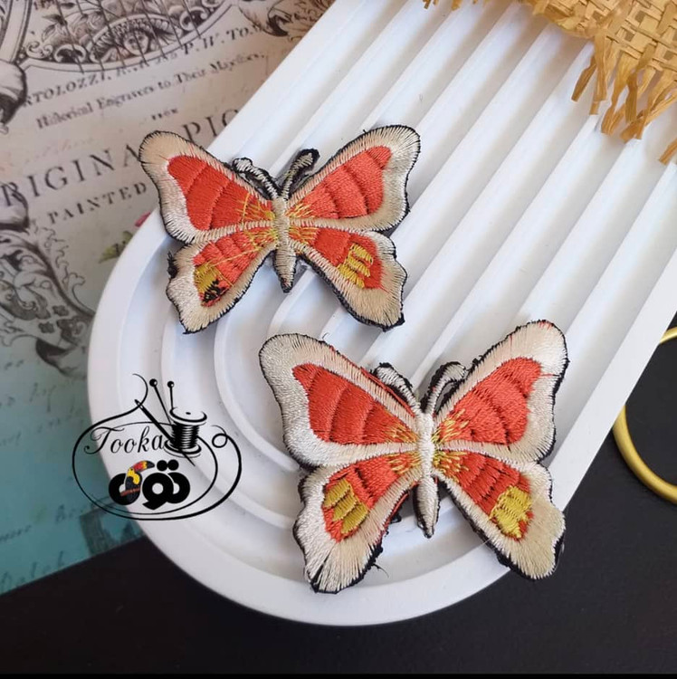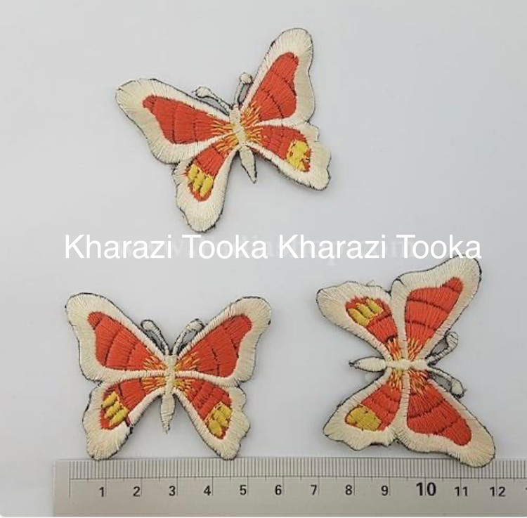 تکه دوزی حرارتی پروانه پارچه ای گلدوزی شده جهت اباس، شال، روسری، کلاه، کیف، کفش، پیراهن، دامن ، حوله، سرویس خواب، پرده، رومیزی که با حرارت اتو می چسبد و قابل دوختن هم هست