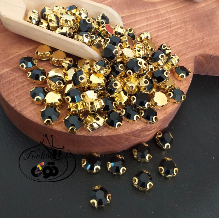 نگین گرد پایه دار مشکی (پایه طلایی)