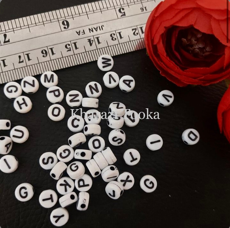 مهره حروف گرد تخت سفید مشکی بسته ۴۰ تایی