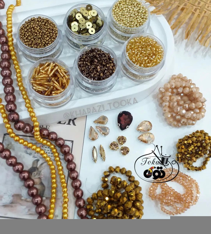ملیله منجوق از هر رنگ ۵ گرم و پولک هر رنگ ۳ گرم