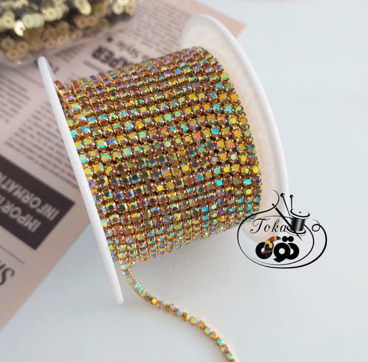 نگین متری پایه همرنگ طلایی هفت رنگ