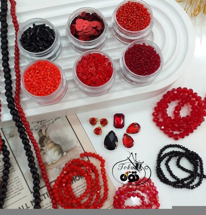 ملیله منجوق از هر رنگ ۵ گرم و پولک هر رنگ ۳ گرم